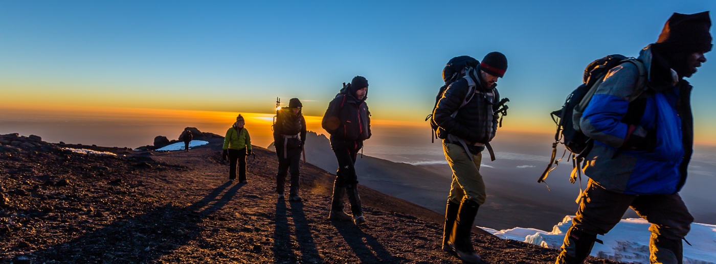 Very early in the morning (midnight to 2am), we continue our way to the summit between the Rebmann and Ratzel glaciers. You head in a northwesterly direction and ascend through heavy scree towards Stella Point on the crater rim. This is the most mentally and physically challenging portion of the trek. At Stella Point (18,600 ft), you will stop for a short rest and will be rewarded with the most magnificent sunrise you are ever likely to see (weather permitting). From Stella Point, you may encounter snow all the way on your 1-hour ascent to the summit. At Uhuru Peak, you have reached the highest point on Mount Kilimanjaro and the continent of Africa. Faster hikers will see the sunrise from the summit. From the summit, we now make our descent continuing straight down to the Mweka Hut camp site. Mweka Camp is situated in the upper forest and mist or rain can be expected in the late afternoon. Later in the evening, we enjoy our last dinner on the mountain and a well-earned sleep.