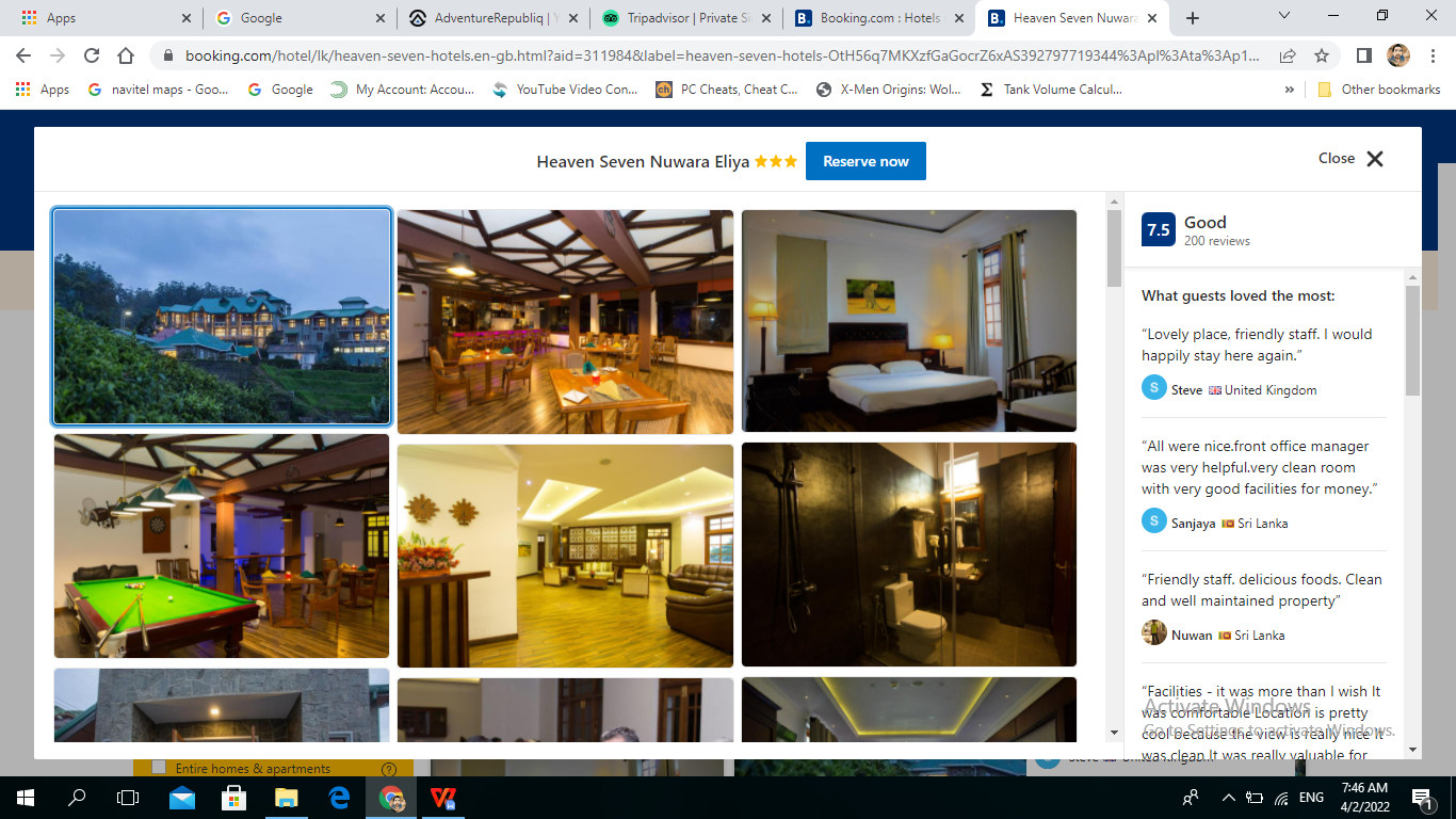 | Nuwara Eliya | 02 | Hotel | Heven Seven | 3 Star | Private |